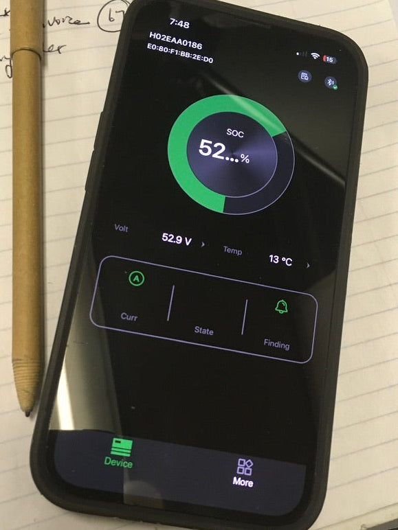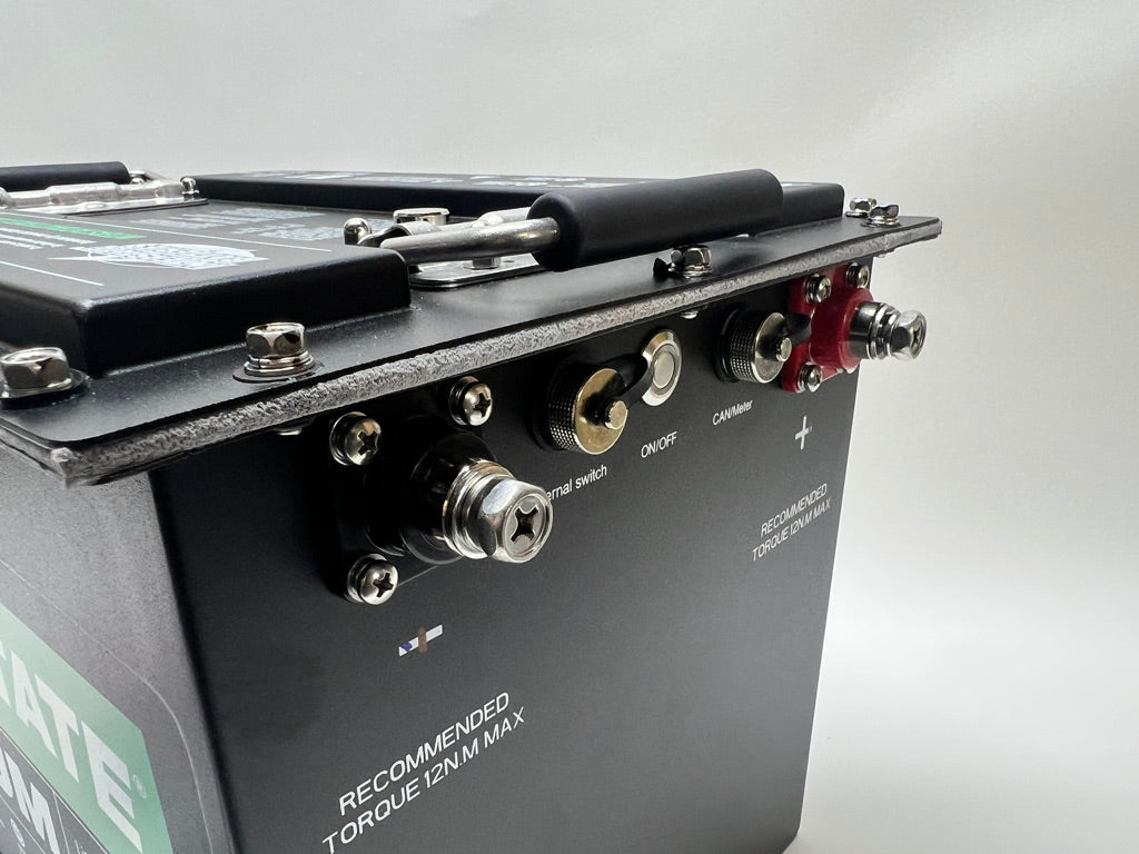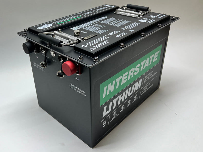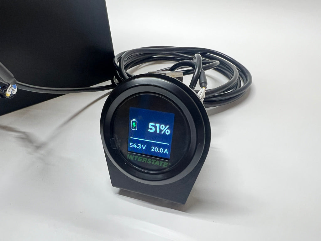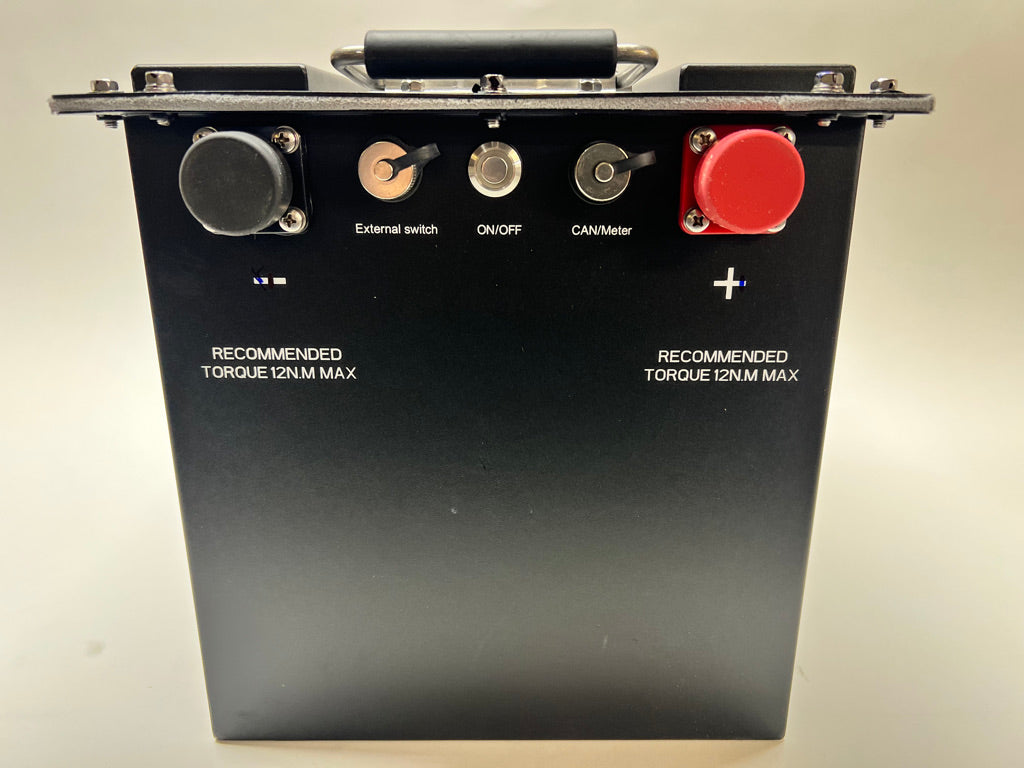 Loaded with features, this brand-new 48-Volt, 5.12kWh Lithium-Ion Battery Pack is just what we've been waiting for. It boasts an internal BMS, bluetooth, graphic two-inch battery gauge, startup button, and internal heater for cold-weather charging. This is a complete, plug-and-play lithium battery solution for 48V applications. Thanks to bluetooth connectivity, all critical battery data can be conveniently viewed from a smartphone app. This is the standard battery for our Allis-Chalmers Model G tractor kit. Compatible with this 48V onboard charger.